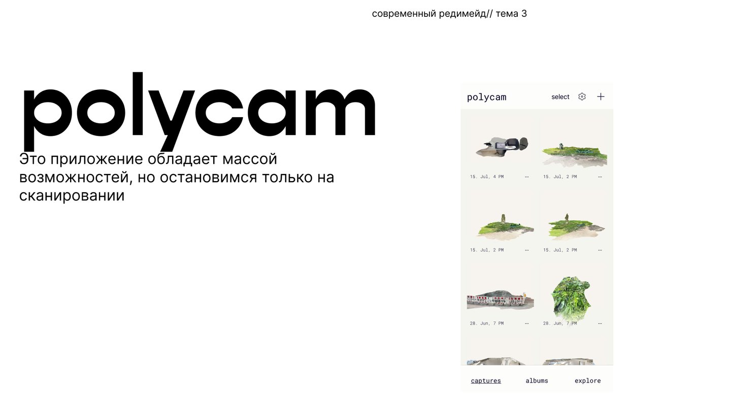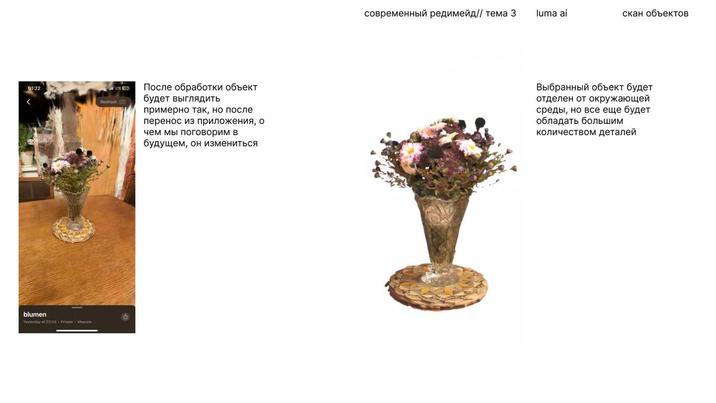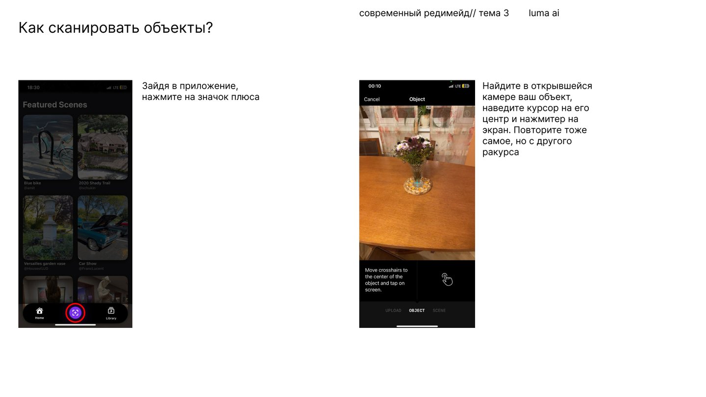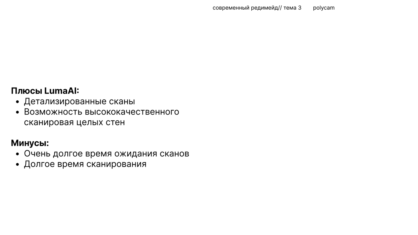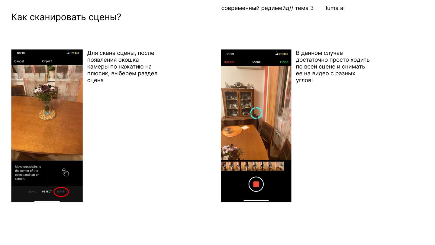 В течении темы студенты получат базовые знания по 3D сканированию, а также освоят инструментарии Polycam и LumaAI