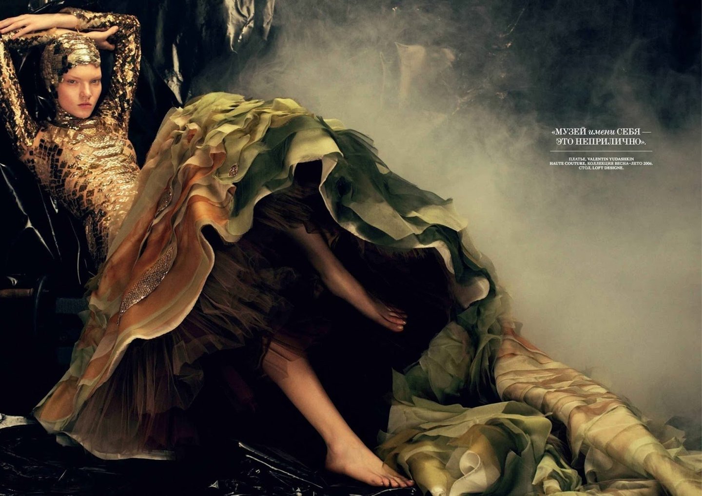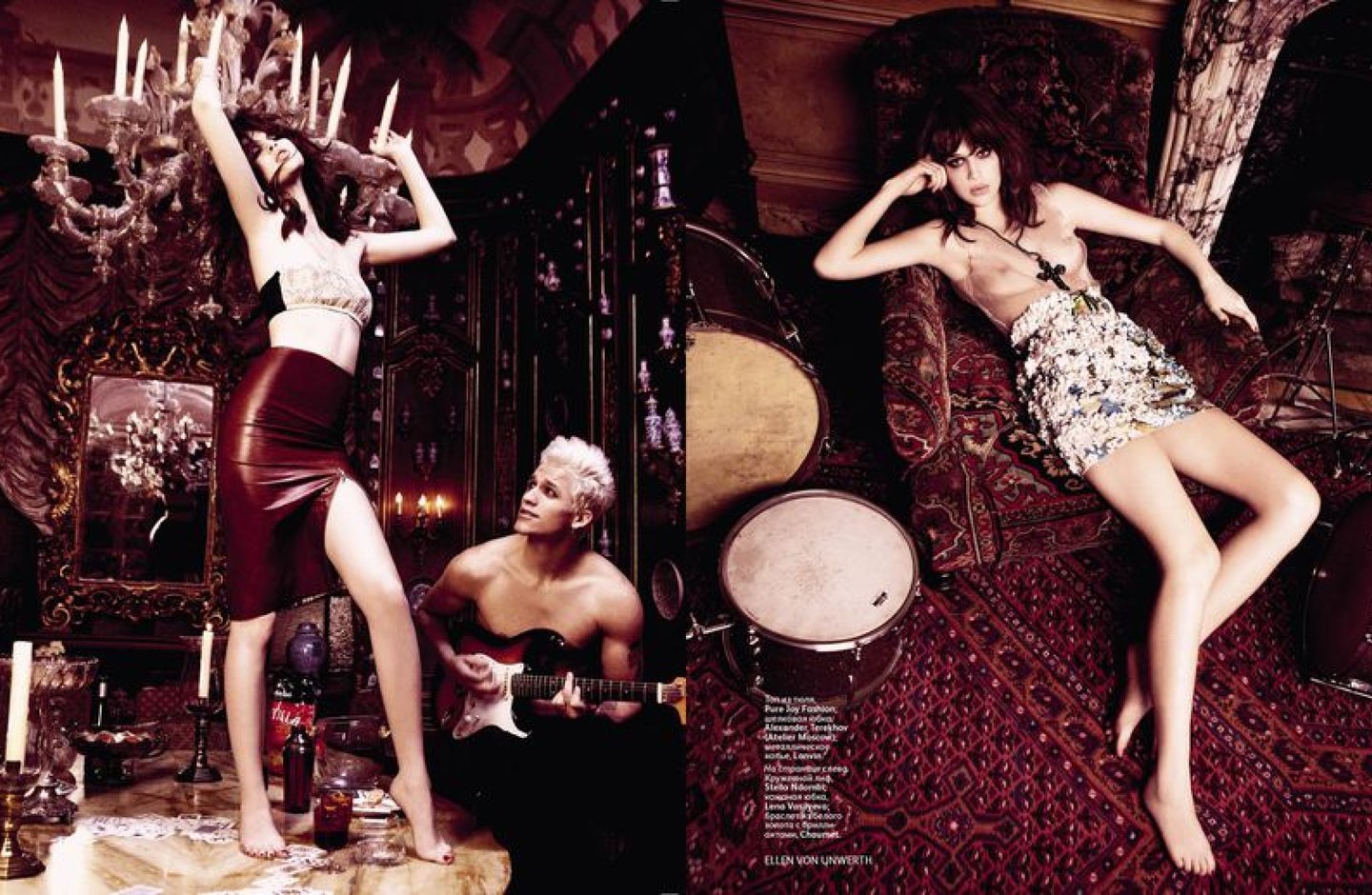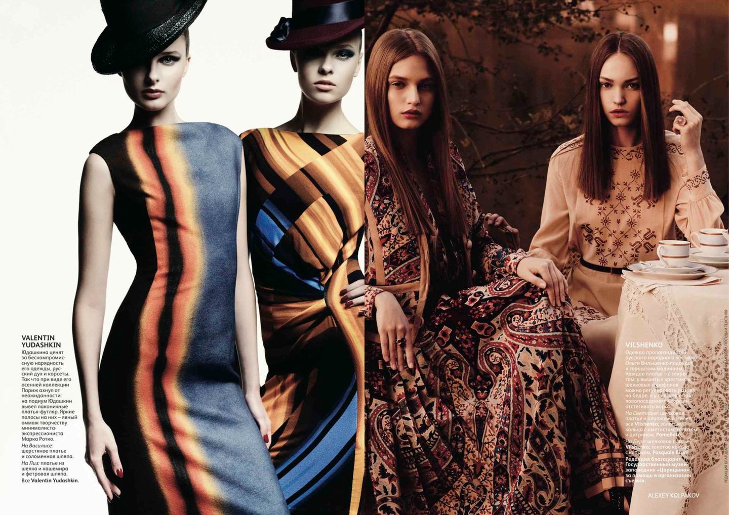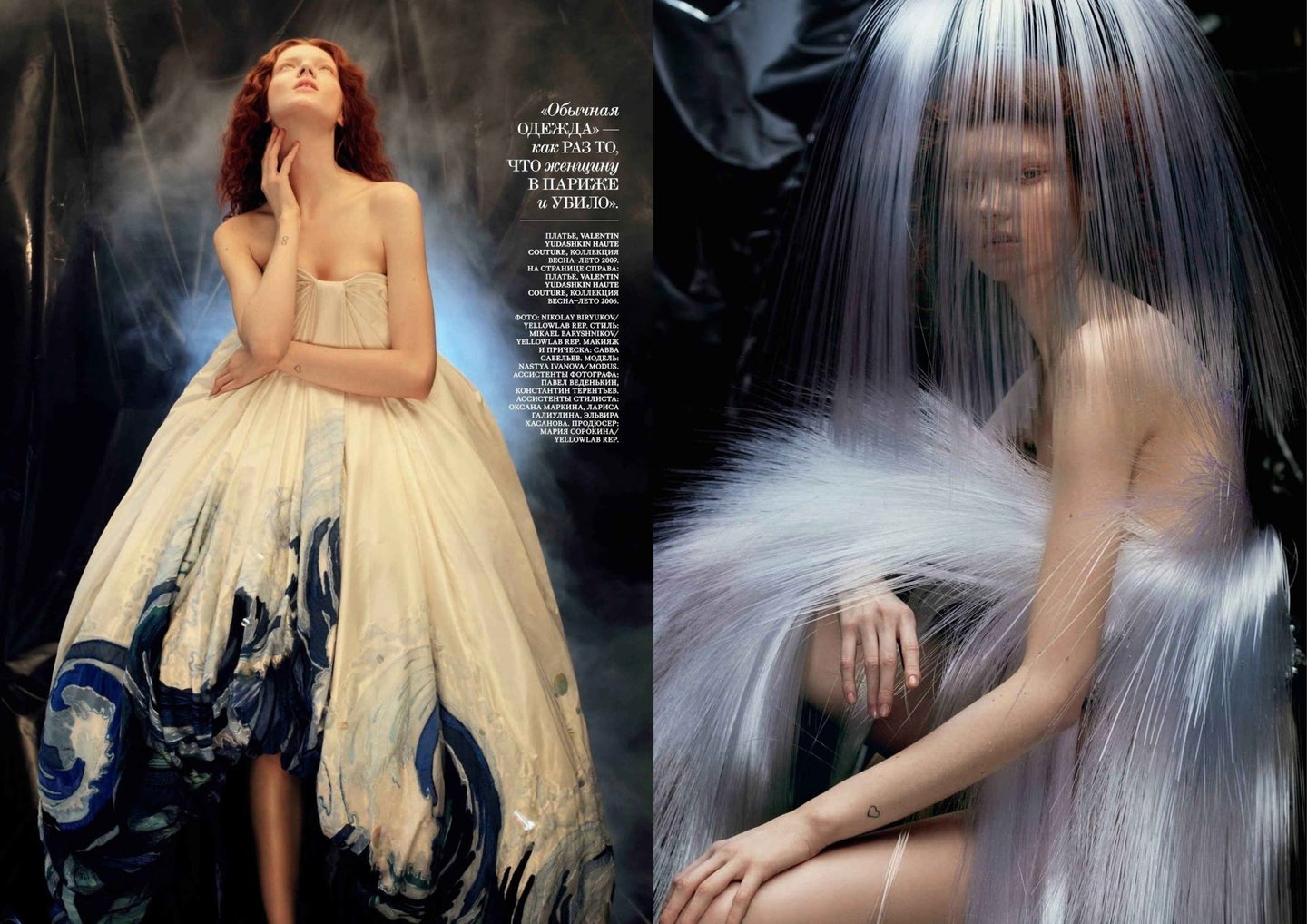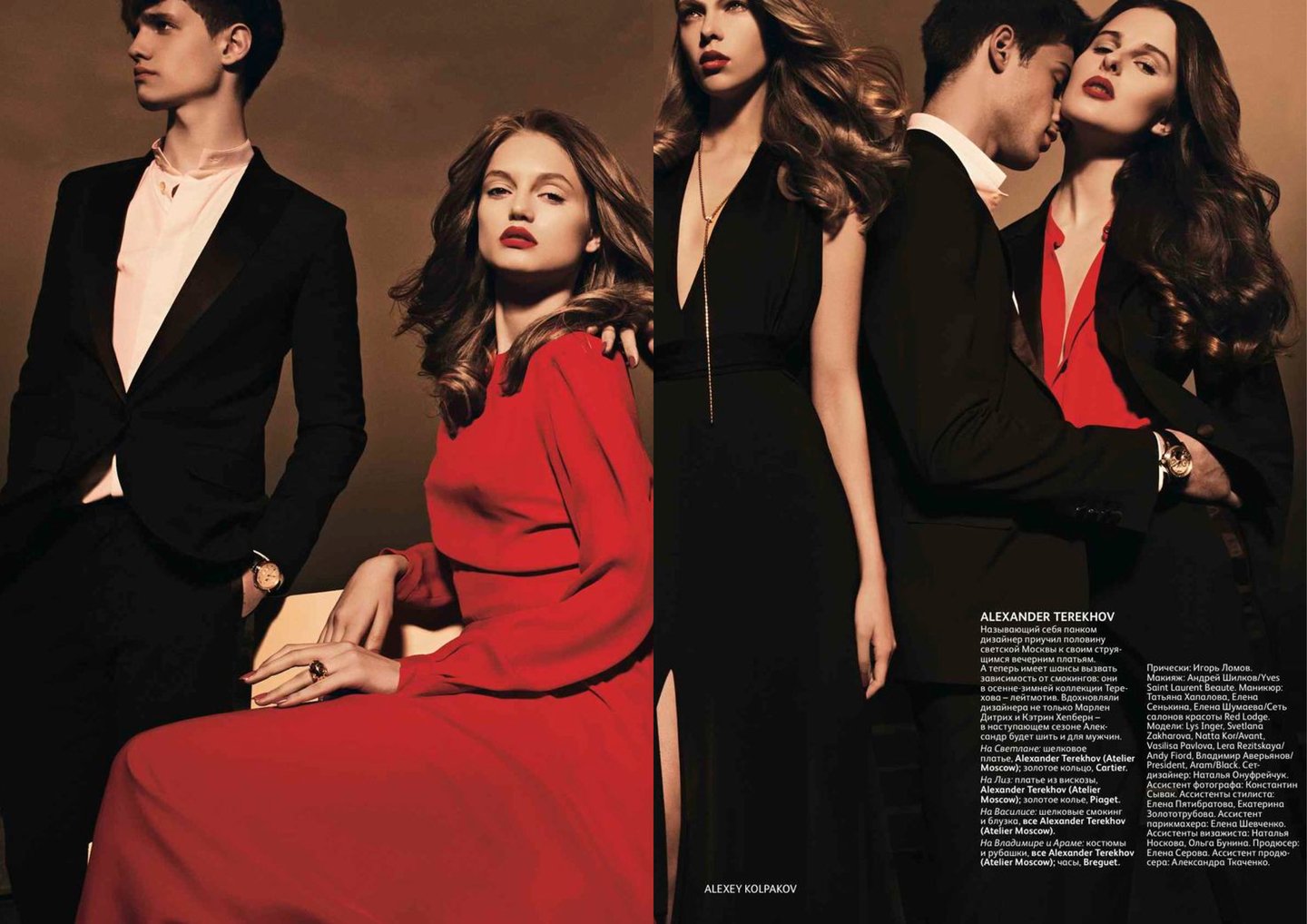 Фотограф: Алексей Колпаков Прически: Игорь Ломов. Макияж: Андрея Шилков Модели: Lys Inger, Svetlana Zacharova, Natta Kor, Vaselisa Pavlova, Vera Resitskaya, Владимир Аверьянов Сет-дизайнер: Наталья Онуфрейчук Ассистент фотографа: Константин Сывак Ассистенты стилиста: Елена Пятибратова, Екатерина Золототрубова Ассистент парикмахера: Елена Шевченко Ассистенты визажиста: Наталья Носкова, Ольга Бунина. Продюсер: Елена Серова Ассистент продюсера: Александра Ткаченко