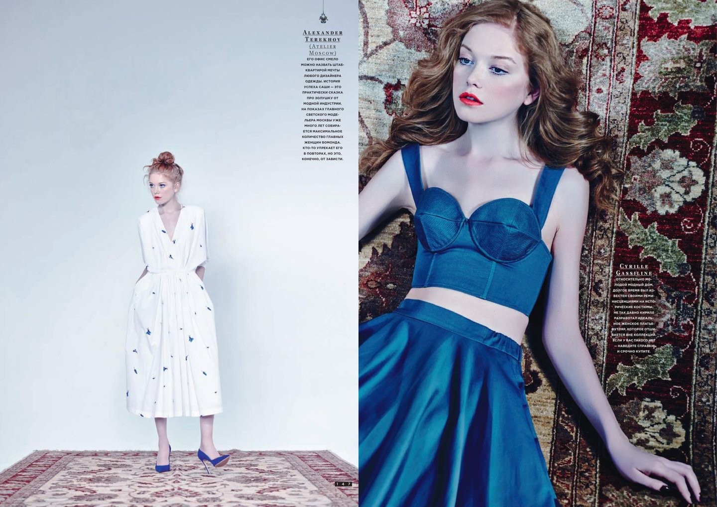 Одежду российских дизайнеров не часто можно встретить в съемках глянцевых журналов в 2000-е. Иногда базовая блузка Alexander Terekhov или пояс Denis Simachev промелькнет рядом с Valentino и MaxMara, но скорее предметы из коллекций можно было найти в подборках сезонных трендов, разборах подиумных коллекций или репортажах с открытий новых модных мест.