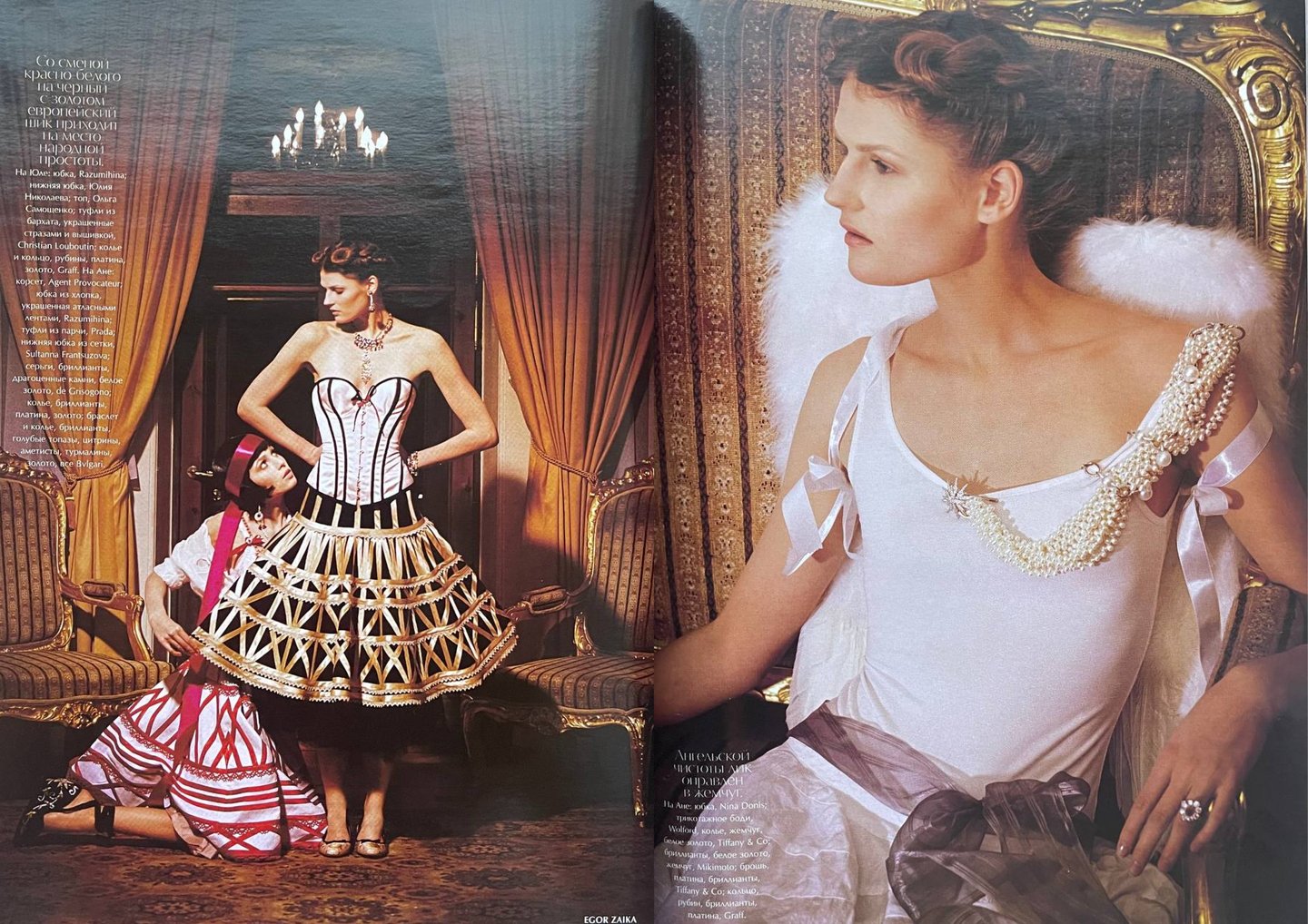 Фотограф: Егор Зайка Стилист: Сабрина Ванотти Макияж: Андрей Дрыкин Прически: Янина Кислякова Модели: Анна Бабичева, София Машанова, Юлия Снигирь Продюсер: Юлия Тризна