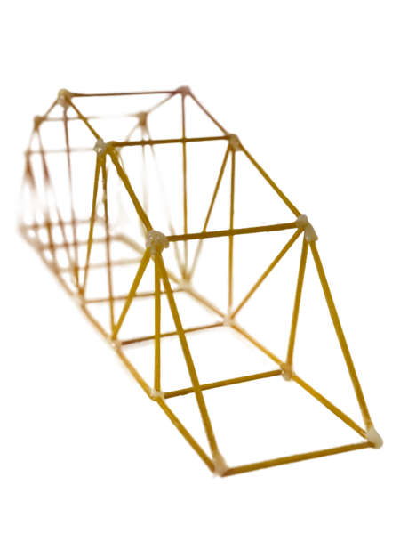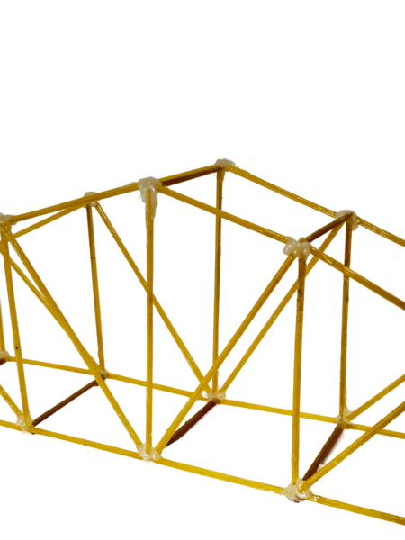 В рамках дисциплины, используя такие подручные материалы, как спагетти, клей-пистолет и клей-момент, мне удалось повторить эту конструкцию
