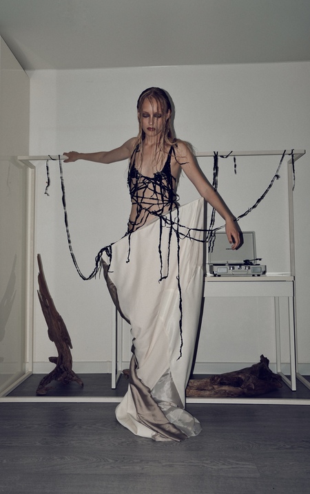Апсайклинг превращает изделия в более ценный предмет, нежели он был до этого, это трансформация, творческое преобразование вещей. На основе базовой, универсальной одежды бренда «Maag» можно создать новую наполненность, новый характер. Сепарация и моё пространство стали точкой, откуда я начала новую жизнь. Спокойствие и хаос в совокупности дают мне ощущение дома и принадлежности к нему. Я въехала в пустое белое пространство и преобразовала его, наделив своими элементами. Переезд мне помог, потому что я очистила свое замусоренное сознание и поняла, из чего я состою. Эти составляющие я туда внесла, это стало моим миром, моим настоящим домом. Поэтому я посчитала возможным перевести эти элементы в приемы и ввести в дизайн.