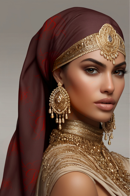 Мерч и продукция выполнена в восточной стилистике: Платки для головы и бедер, а также украшения в виде сережек и ожерелий