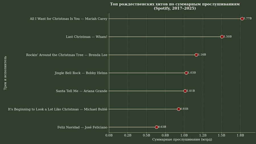 3. Топ рождественских хитов по суммарным прослушиваниям