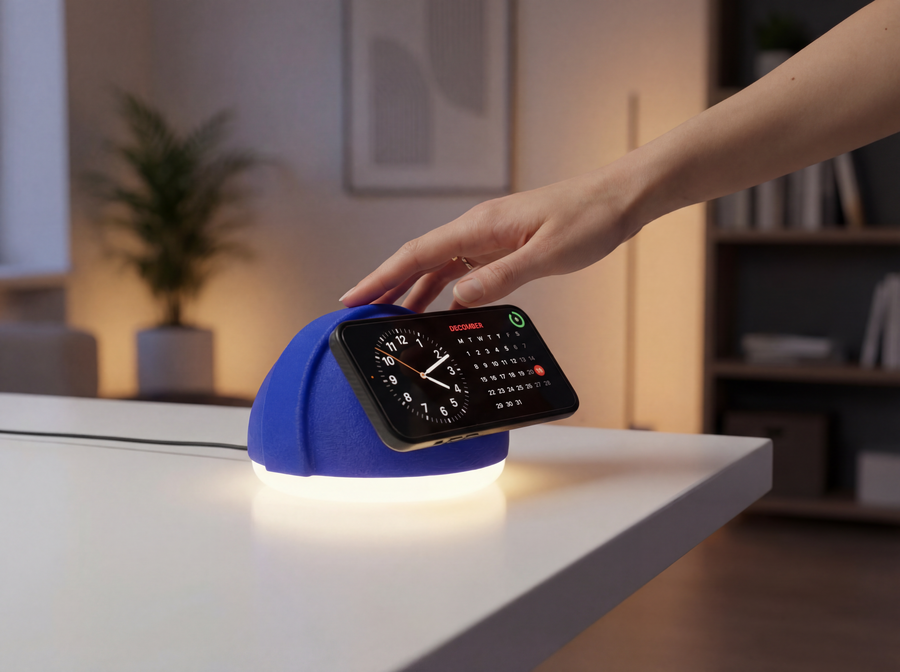 Интерьерный светильник-ночник, разработанный для Mana Fabric, с применением технологии 3д печати из PLA и PC пластика.