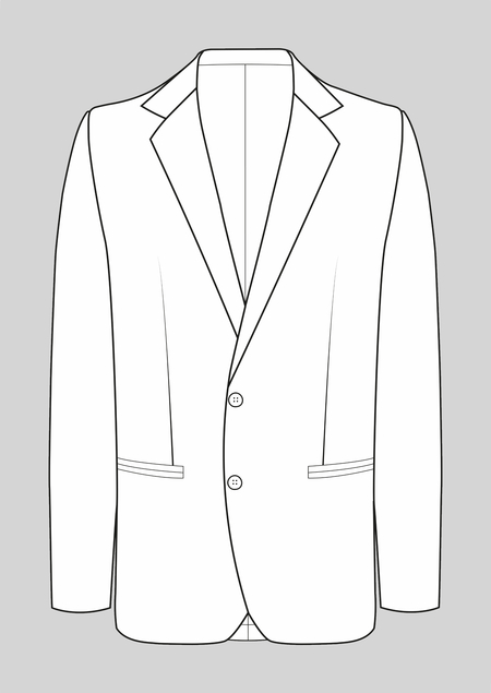 Пиджак мужской всесезонный для средней возрастной групы, из полушерстяной гладкокрашеной костюмной ткани, полуприталенного силуэта, умеренного объёма, с втачными рукавами, с бортовой застёжкой на две обмётанные петли и пуговицы. Перед с боковыми карманами в рамку. Спинка со средним швом, заканчивающимся шлицей. Рукава двухшовные, с верхними и нижними швами. Низ рукавов со шлицами с четырьмя пуговицами. Воротник отложной пиджачного типа с отрезной стойкой. Изделие на притачной подкладке. Рекомендованные размеры: S (рост 164-169), M (рост 170-175), L (рост 176-181), XL (рост 182-190).