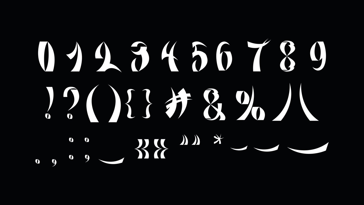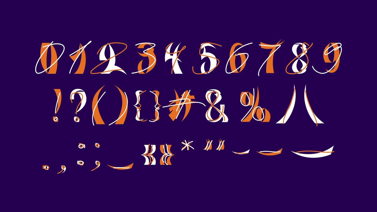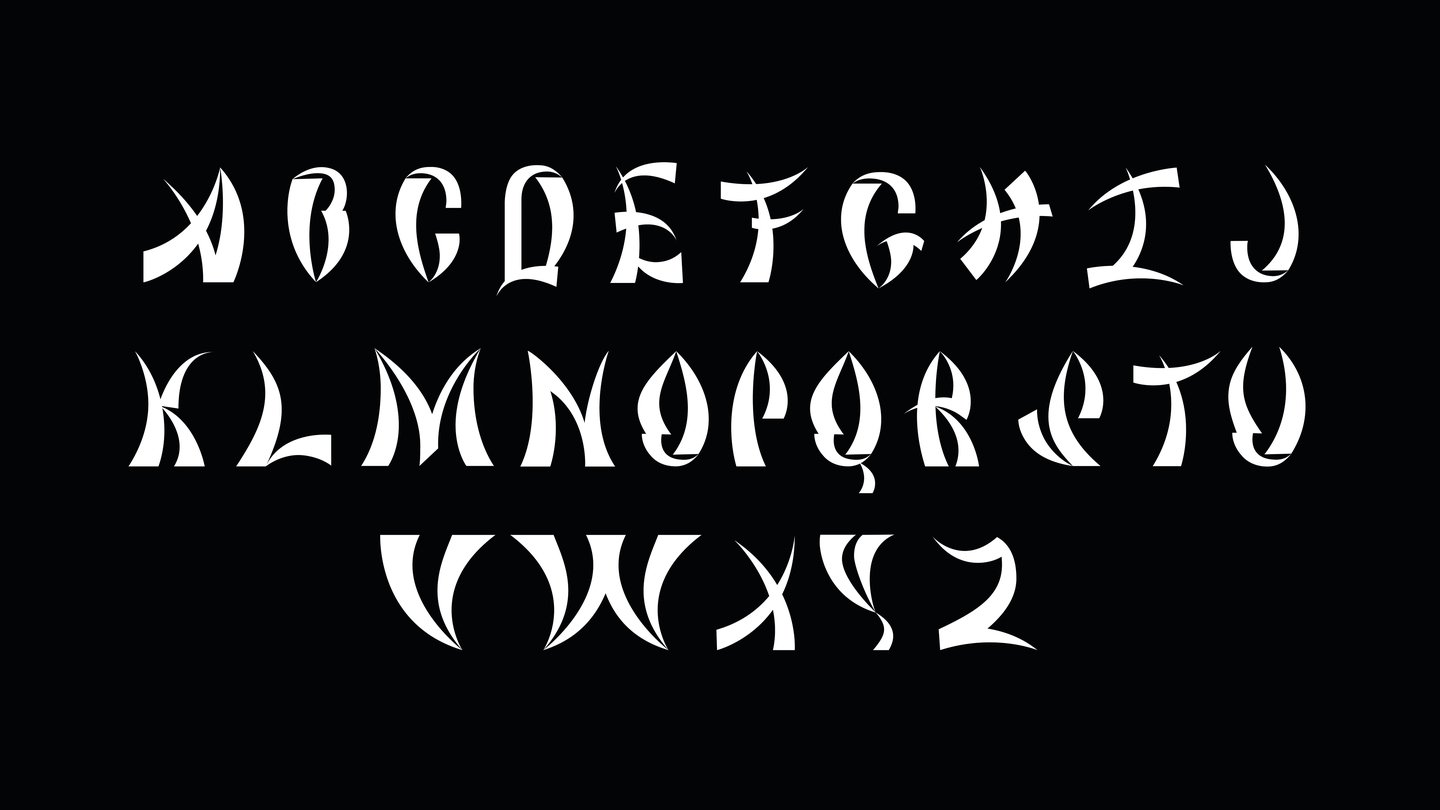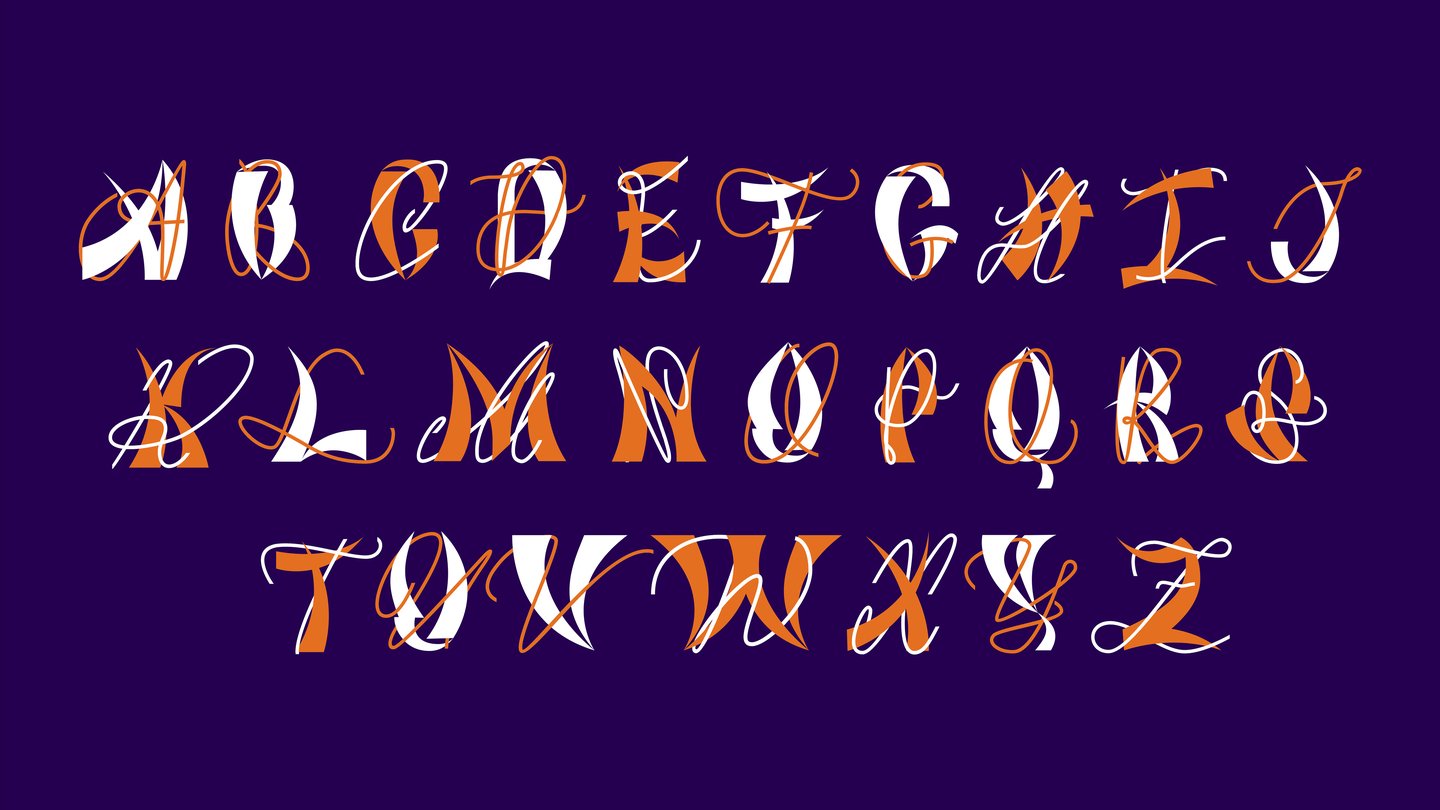 Шрифт состоит из двух частей: первая — имитация письма прямым пером, вторая — интерпритация современного прописного почерка.