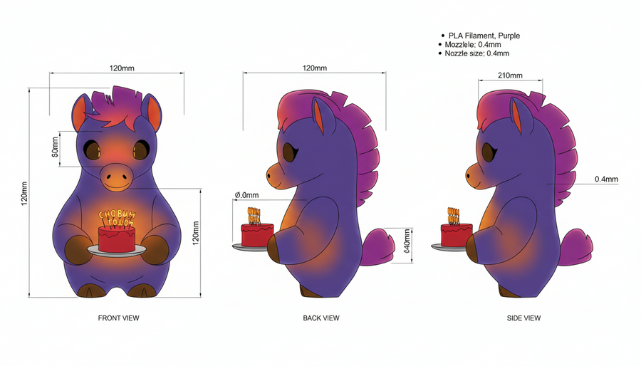 FDM/FFF для мелкосерийного производства (до 1000 шт.), с диаметром сопла 0,2-0,4 мм и высотой слоя 0,08-0,15 мм для детализации милых черт (глаза, шерсть).
