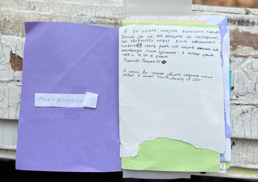 В июне 2024 года я вела творческую мастерскую по созданию книги художника в арт резиденции «Кавардак» для детей от 8 до 17 лет.
