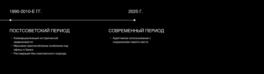 • Сохранение архитектурной идентичности через диалог старого и нового • Создание иммерсивной среды через нарративы • Использование локального культурного кода как основы архитектурного решения • Тактичное внедрение современных технологий без нарушения исторической атмосферы