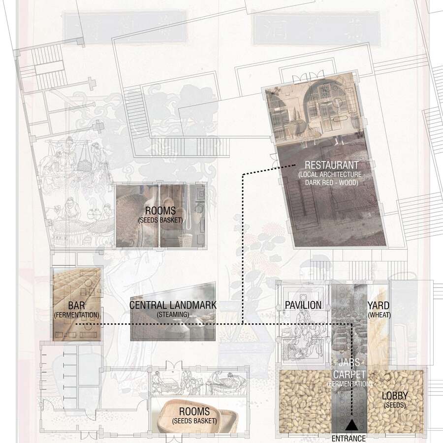 Проект бутик-отеля в Яньане представляет собой пример тотального погружения в локальный культурный код через архитектуру и дизайн. Концепция построена не на стилизации, а на глубоком изучении и художественной интерпретации традиционного процесса винокурения, где каждый архитектурный элемент становится носителем истории и тактильного опыта.