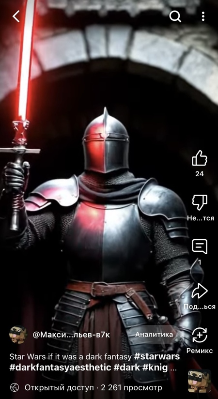 Далее переходим к анализу видео. С помощью этих видео я попытался привлечь аудиторию фанатов звездных войн, чтобы возможно в дальнейшим развить эти каналы в проекты по созданию контента по ним. Был создан один ролик, выпущенный в YouTube и TikTok. Для генерации изображений и некоторых видео использовался «Шедеврум», также для генерации видео использовались «GoEnhance». «Vidu», «Animate Image AI YesChat» и «Artlist». Помимо этого, был использован «ChatGPT» для создания названия ролика, его темы и создания вирусных хэштегов. Ну и наконец, чтобы собрать все это созданное воедино, я использовал Alight Motion. С использованием сразу несколько нейросетей для создания одного ролика, видео смогло все равно сложиться воедино.