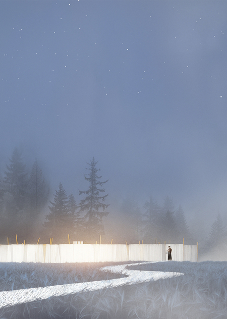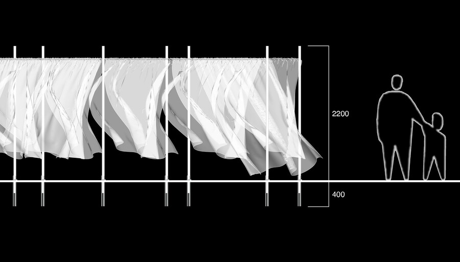 The project consists of simple and familiar elements — a design similar to the underwear-drying stretch and a cloth towel that resembles sheets.