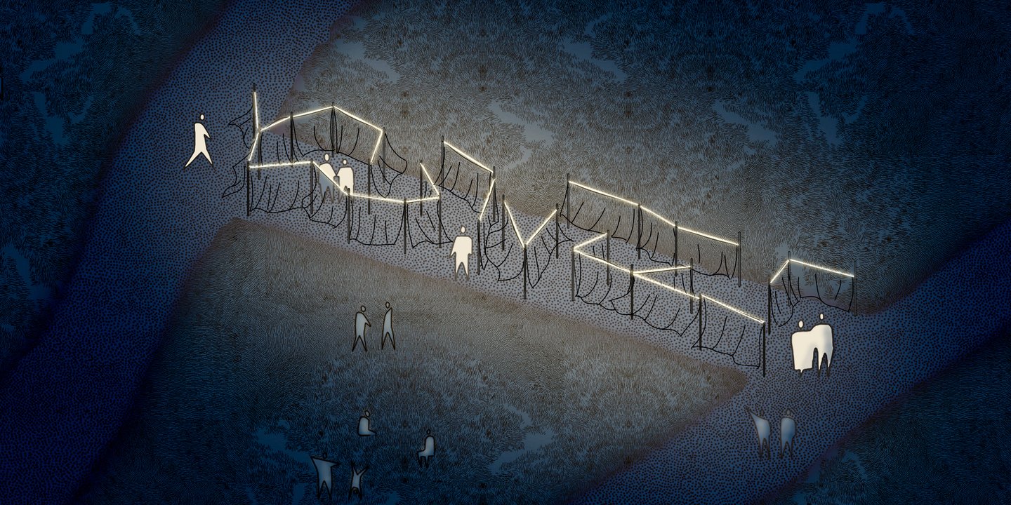While in a labyrinth of sheets, the visitor has a sense of safety and comfort, a warm nostalgic sense of childhood, home, home…