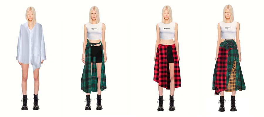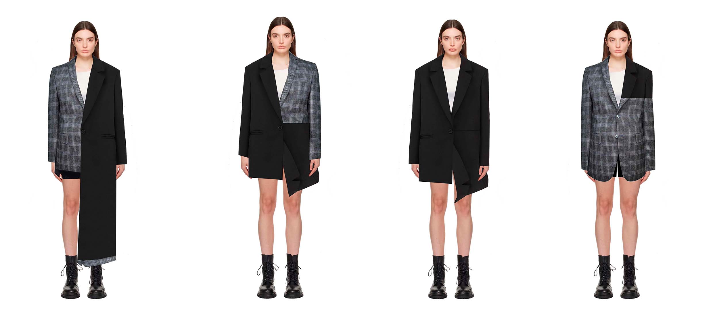 Наложение: Thom Browne FW2017; Перестановка: Parsons SS2017; Наружние швы: Yohji Yamamoto FW2020;