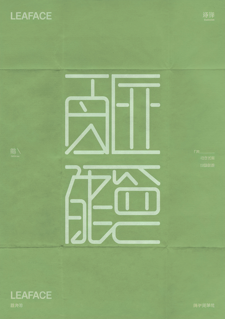 promt/ create a series of promotional posters in light green colors for the Chinese care cosmetics brand LEAFACE; the design is simple and elegant but strict.Place the posters on the walls of a house on the street for people to walk past them