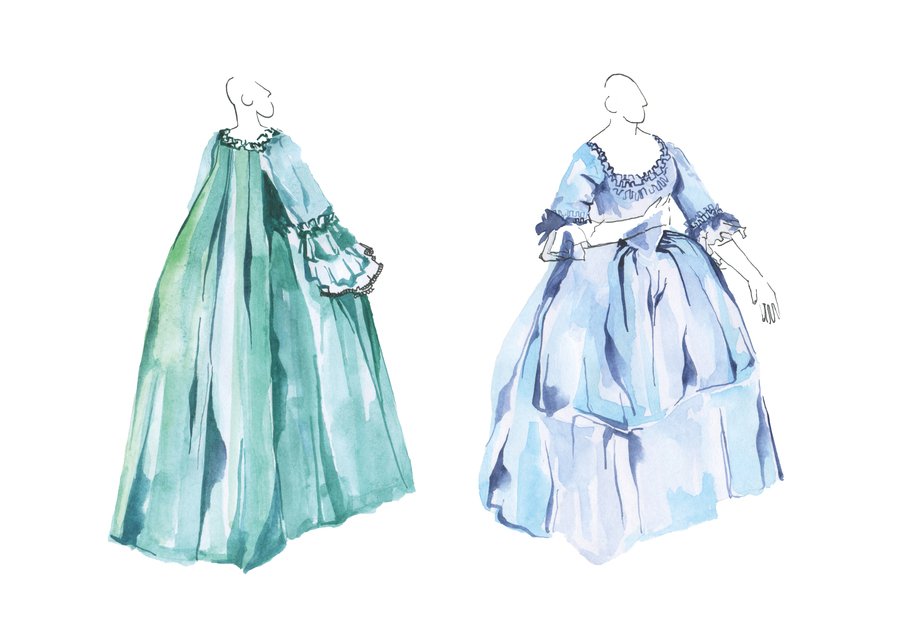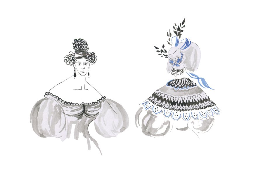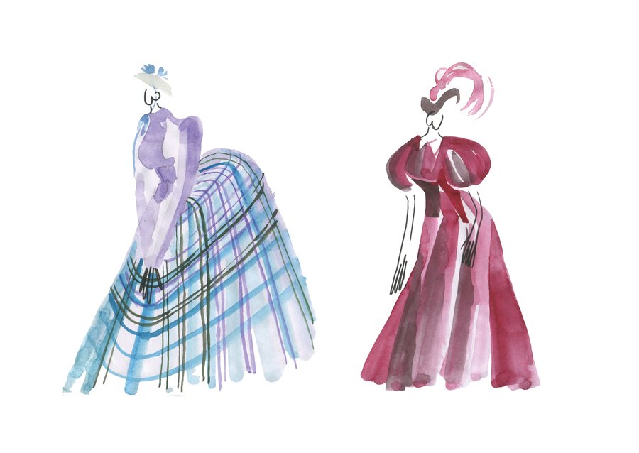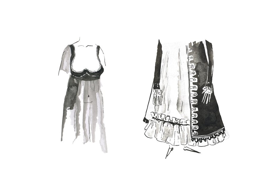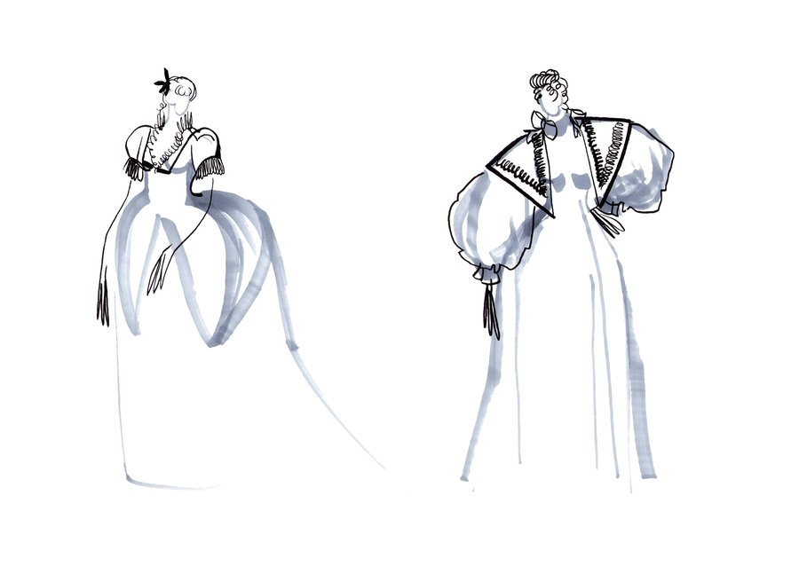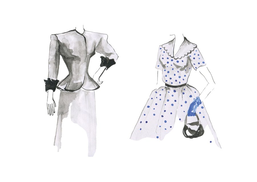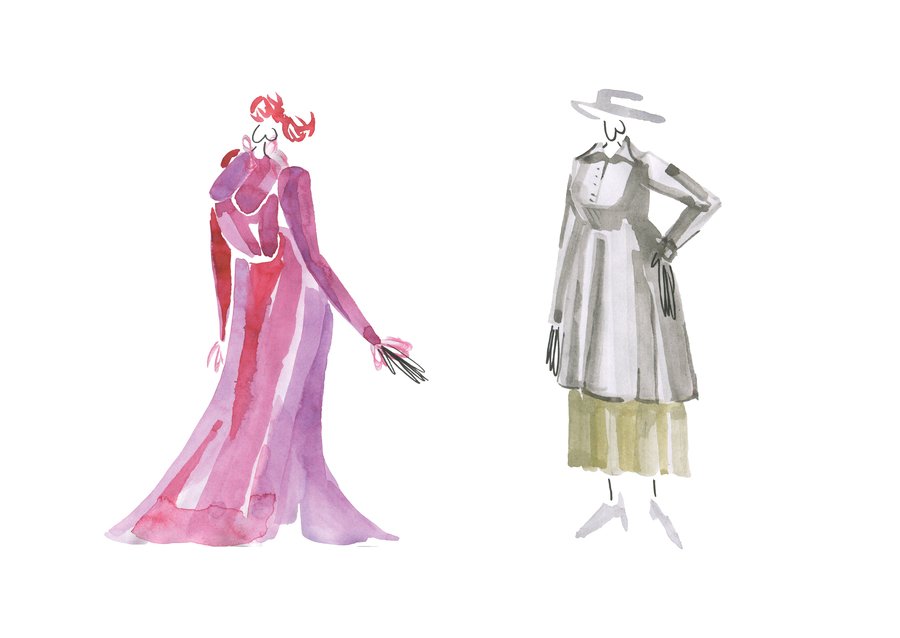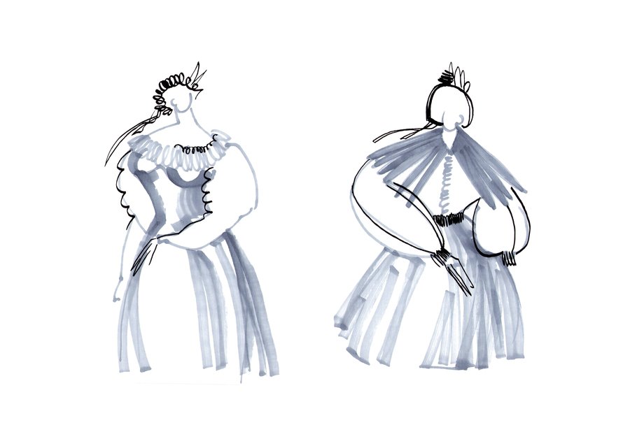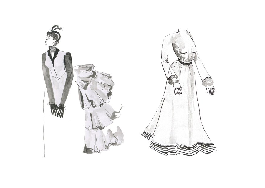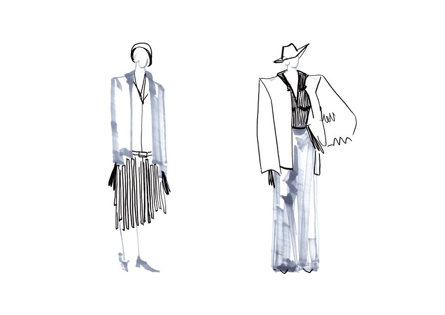 1-й блок направлен на изучение и прорисовку костюма или предмета костюма по КП в различных графических приемах, стилях, идеях
