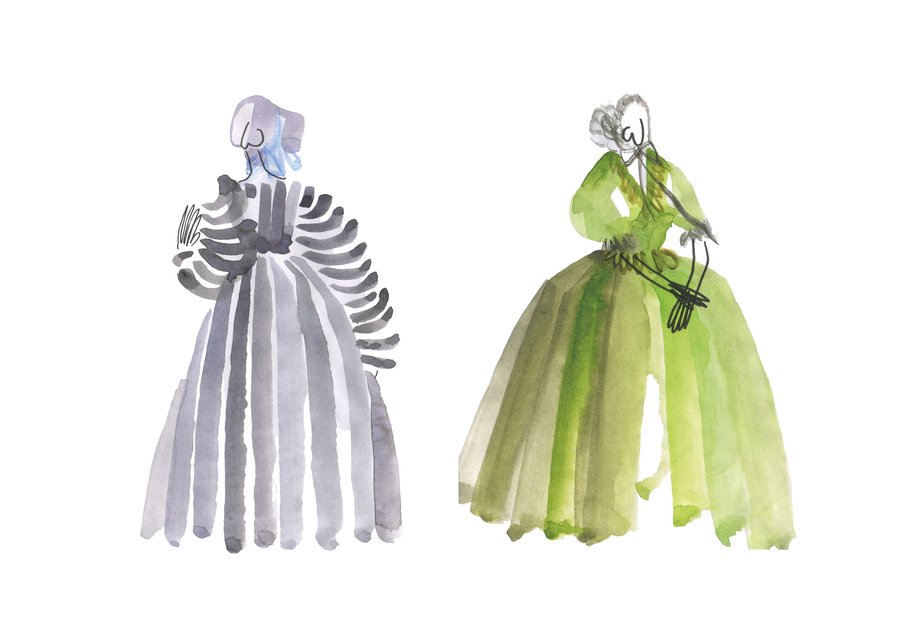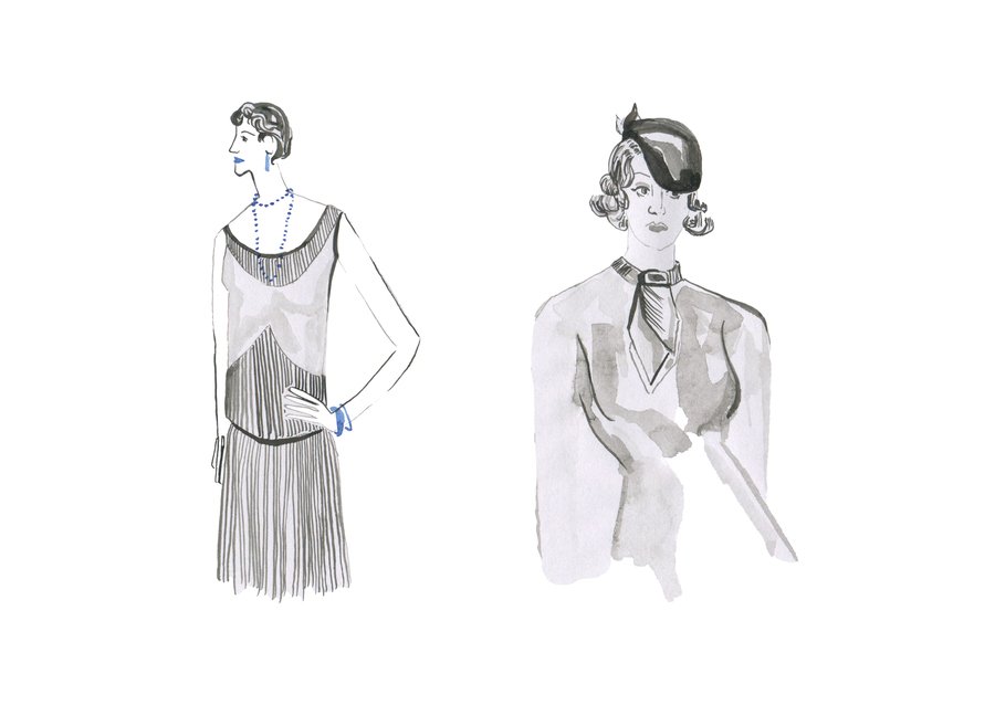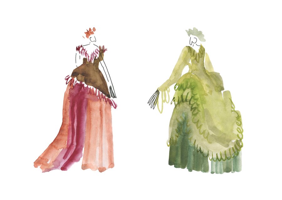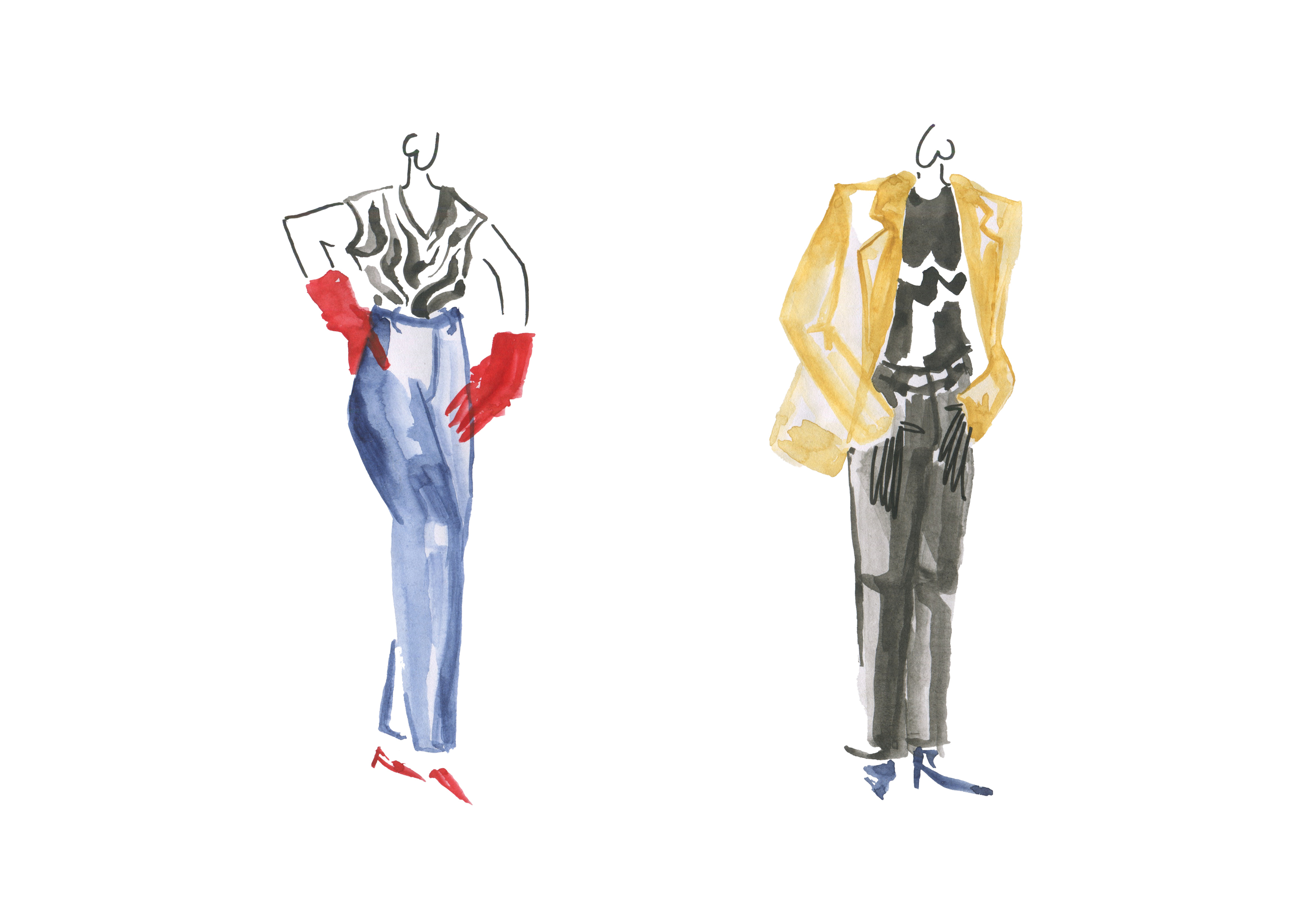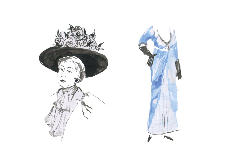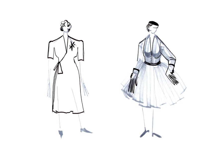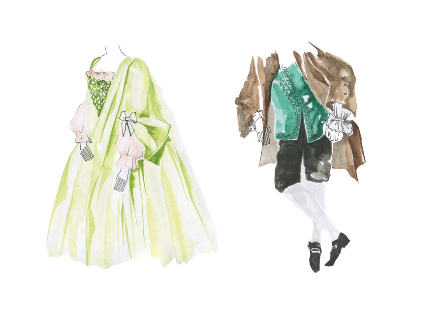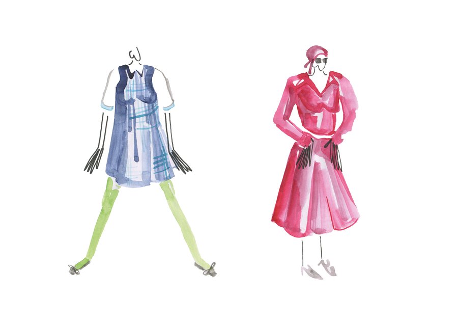1-й блок направлен на изучение и прорисовку костюма или предмета костюма по КП в различных графических приемах, стилях, идеях