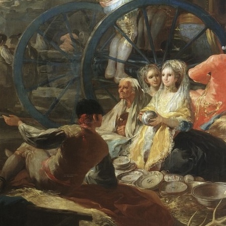«Похороны Сардинки». Сначала ощущается атмосфера, присущая ранним работам Гойи: праздник и всеобщее веселье. Но с каждой секундой увеличивается тревожность от просмотра этой картины. Показана радость людей через танец и открытые движения, но мрачная палитра и темные деревья намекают на что-то неспокойное и тревожное, растворяя первое приятное ощущение праздника. Чувствуется тонкая грань между весельем и хаосом.