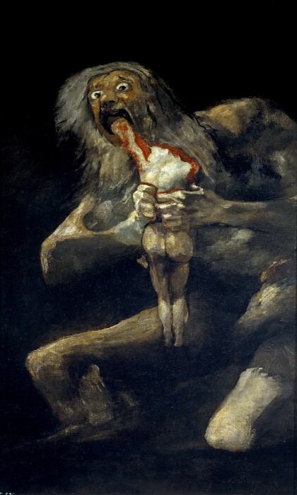 «Сатурн, пожирающий своих детей» Гойи довольно сильно отличается от привычного образа этого мифологического сюжета. Другие художники изображали Кроноса сильным и властным богом, борющимся за свою власть, а Франсиско Гойя изобразил его костлявым, с ужасающим выражением лица, а его длинные седые волосы подчеркивают безумный вид бога.