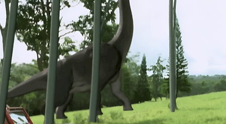 Первым, созданным в CGI динозавром, стал брахиозавр большого размера.