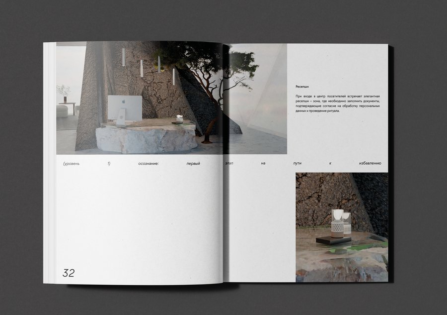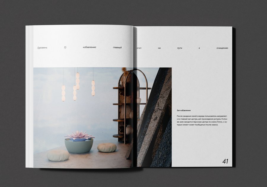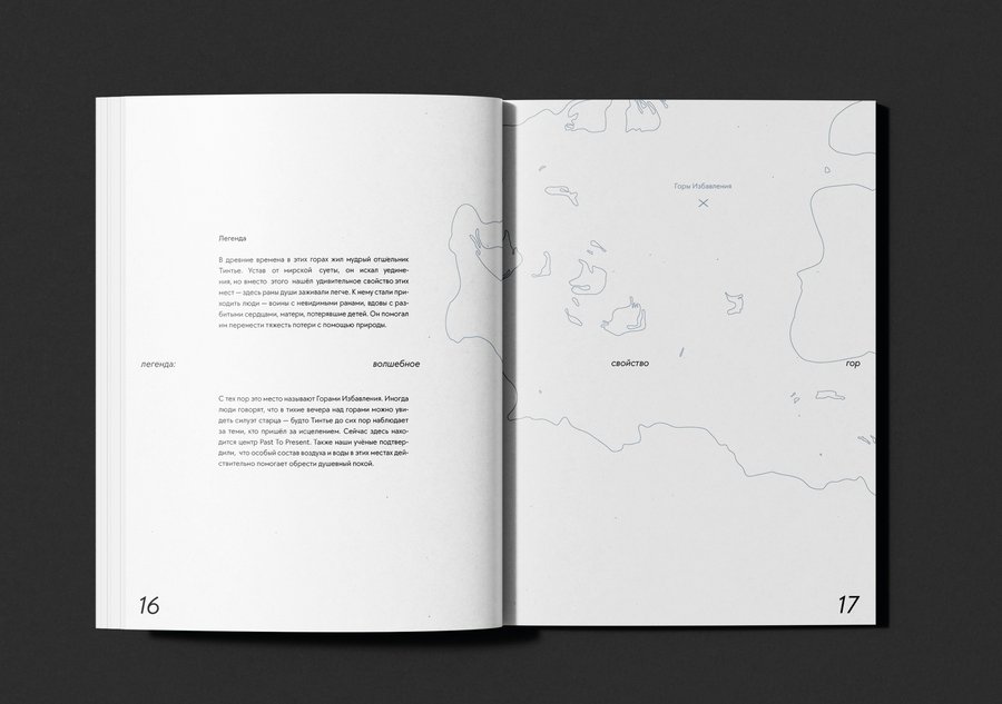 Книга — издание, которое включает в себя как путеводитель по пространству, так и историю зарождения древнего ритуала. В первой части вы сможете узнать о концепции и миссии центра, ознакомиться с историей ритуала и гор, а далее узнать как устроено пространство.