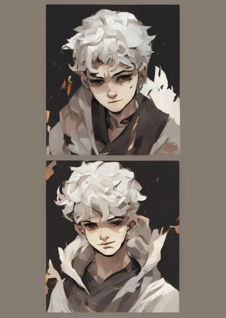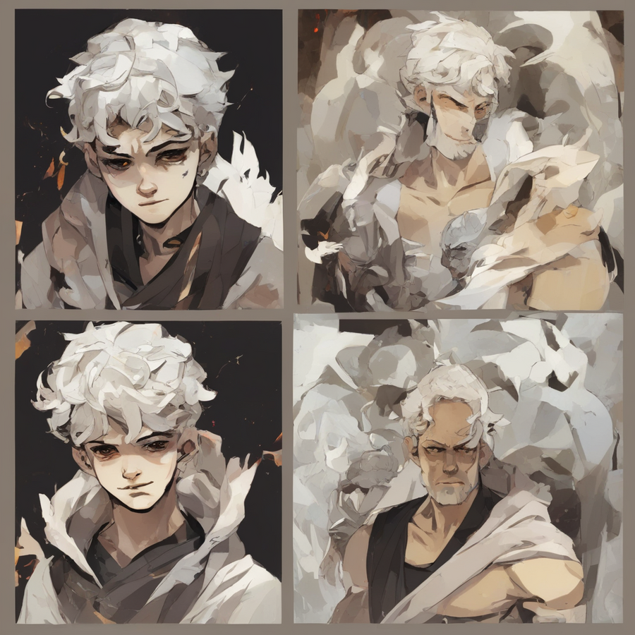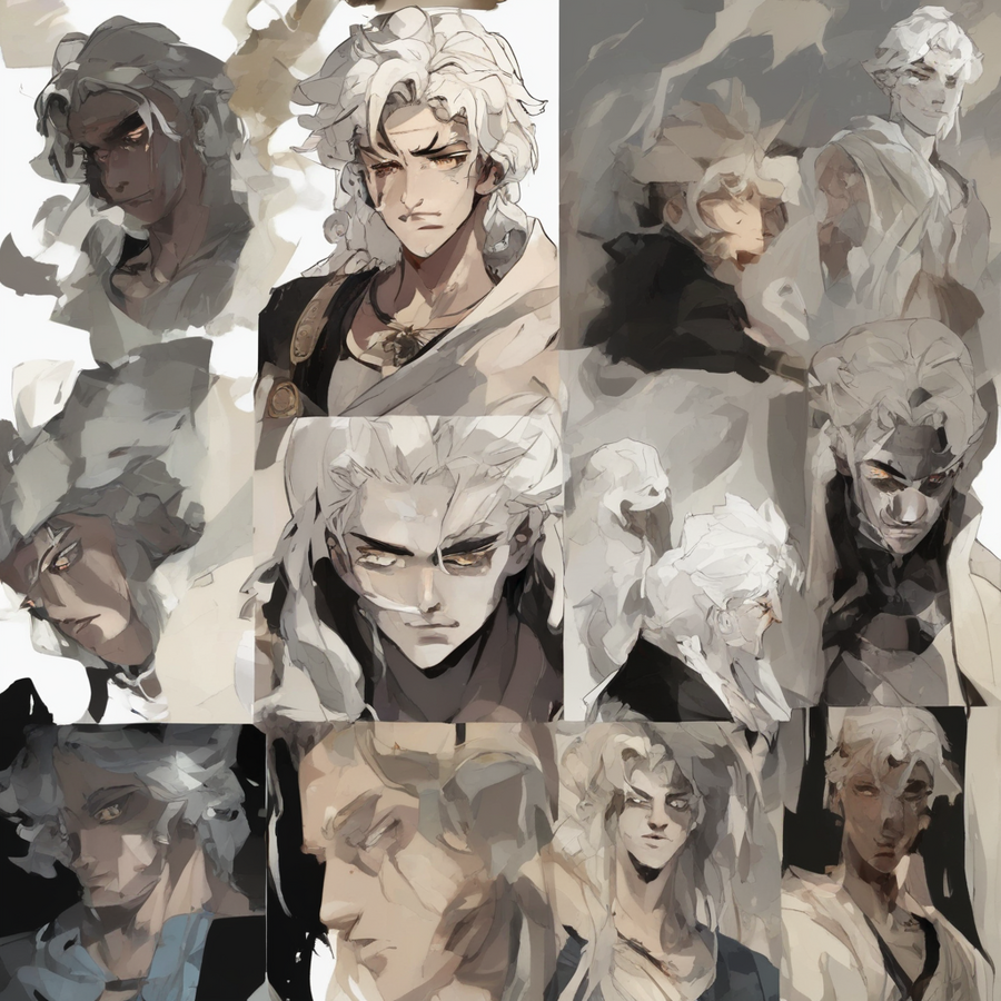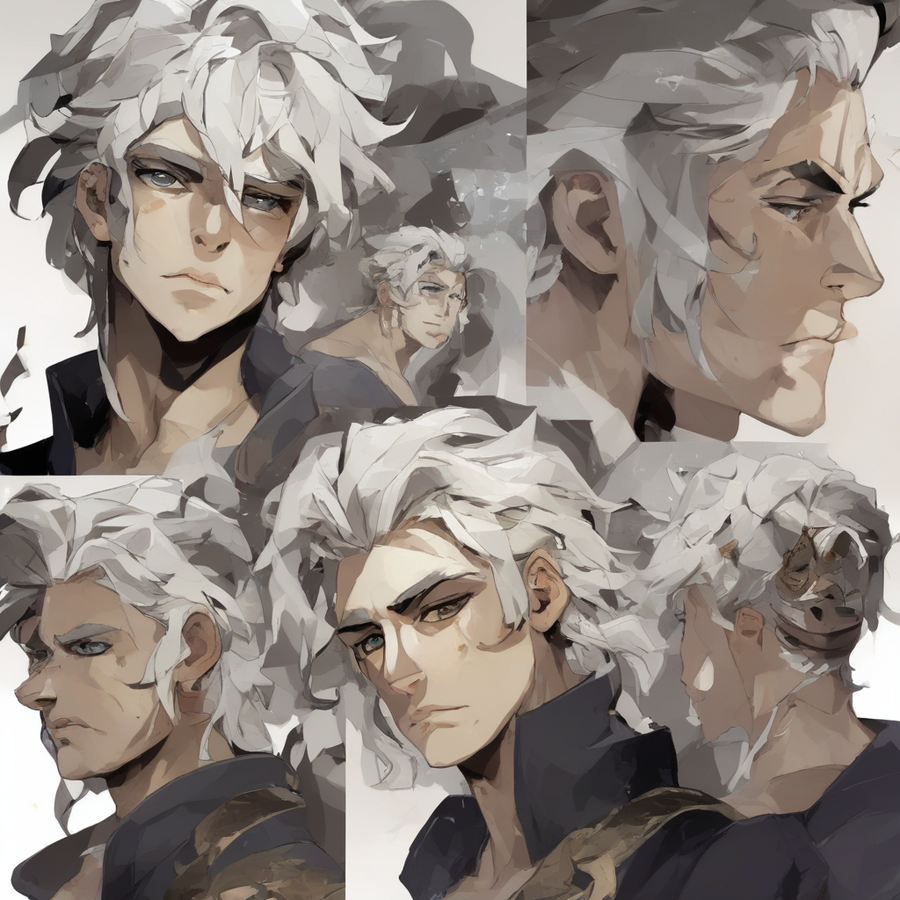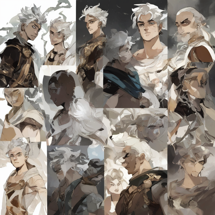В итоговой серии мы видим героев античного мифа. Оригинальный стиль сочетает аниме-динамику, комиксную пластику и ренессансную монументальность. Главный акцент — мощная стилизация анатомии, выразительные эмоции и символизм через одежду/аксессуары. Эти черты нейросеть воспроизвела точно (особенно одежду!).