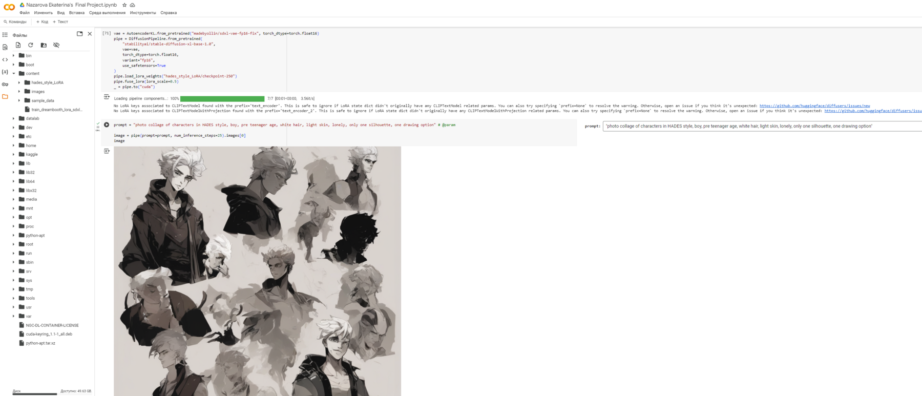 Конечно, итоговые фотографии несколько отличаются от ожидаемого из-за нечёткости изображения лиц. Однако, 1) мне стоило потратить больше времени на обучение нейросети; 2) итоговые фотографии подойдут для обобщённых концептов. Нейросеть чётко передаёт образы и настроение героев.