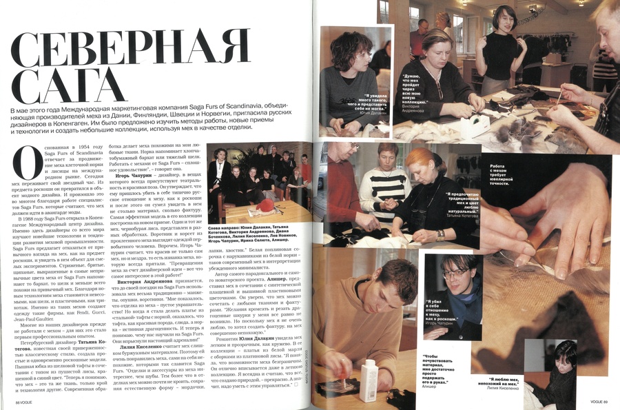 Алишер, Ирина Крутикова, Виктория Андреянова, Елена Ермак, Татьяна Котегова, Лилия Кириленко, Игорь Чапурин в Vogue, ноябрь 1999