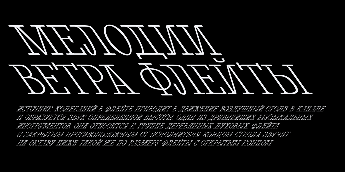 Flauta — это акцидентная антиква, вдохновлённая движением ветра и звучанием духовых инструментов.