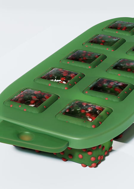 Мягкий пищевой силикон обеспечивает легкое извлечение льда, а прозрачная пластиковая крышка защищает форму от запахов и проливаний