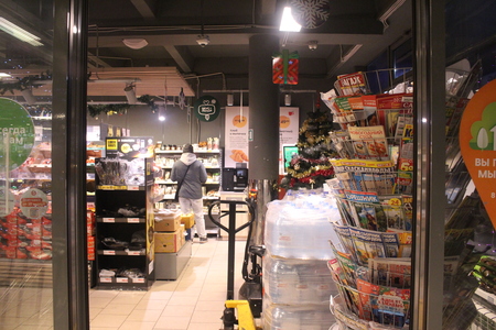 Моя точка как слушателя находилась ровно под динамиком, закрепленным на потолке, и когда я к ней подходила, довольно контрастно ощутила изменение звуковой среды: из гула холодильников, касс и шума покупателей я оказалась в узком окружении «звуковой стены» [1], которая изолировала меня от акустического пространства всего помещения. Продуктивные колебания [2] провоцируют человека на стремление оставаться дольше/ускориться в зависимости от выгоды заведения.