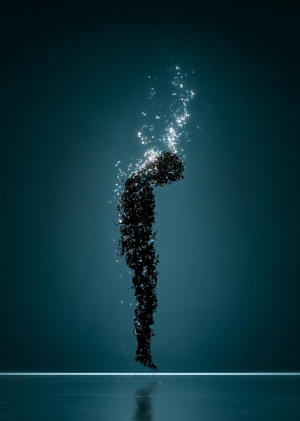 В этом описании нет прямых отсылок к насилию или самоповреждению: человеческая фигура изображается абстрактно, она как бы растворяется в темном пространстве, превращаясь в частицы. Подъём этих частиц вверх создаёт ощущение одновременно исчезновения и лёгкого, почти незаметного освобождения. Тёмный, приглушённый синий фон обложки рифмуется с основным синим цветом в визуализациях, а мягкий свет вокруг фигуры намекает на хрупкую, но всё же присутствующую возможность поддержки и выхода. Минимализм и отсутствие текста позволяют вынести в центр именно эмоциональный подтекст темы, а не буквальное изображение статистики.