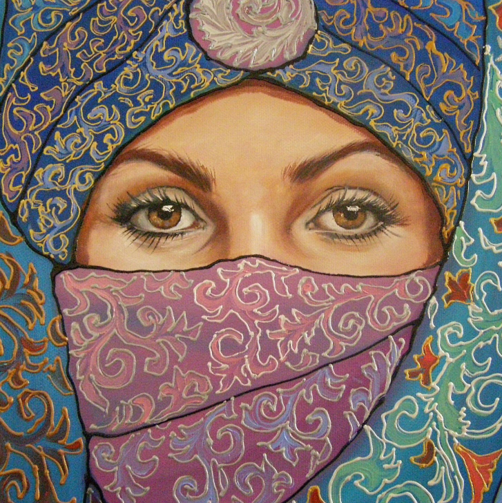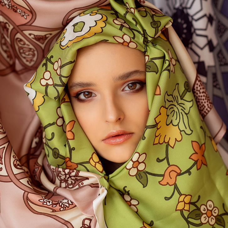 Портретное фото в платке (платок является окантовкой отверстия, в которое проглядывает лицо)