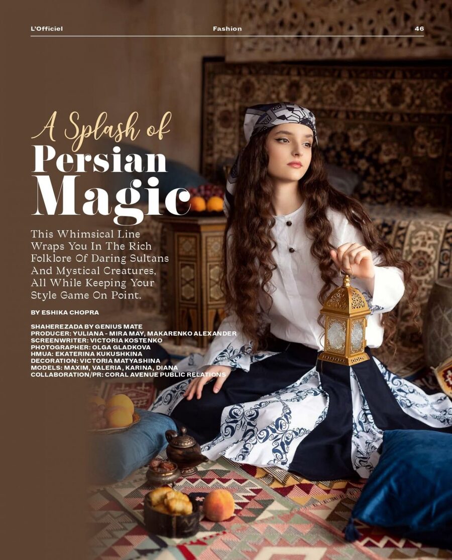 Эта коллекция посвящена тайнам древней Персии, которые сокрыты в государстве Сасанидов III века. Религиозные основы, культурные особенности, ремесла, формировавшиеся вплоть до Х века, обогащенный арабским древнеперсидский язык и образы героев из сборника народных сказаний «Тысяча и одна ночь», легли в основу создания коллекции.