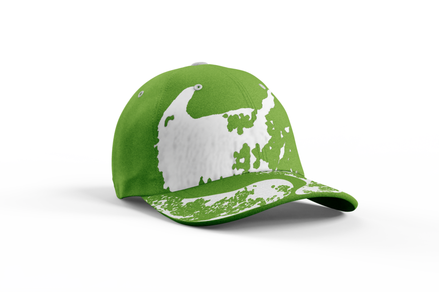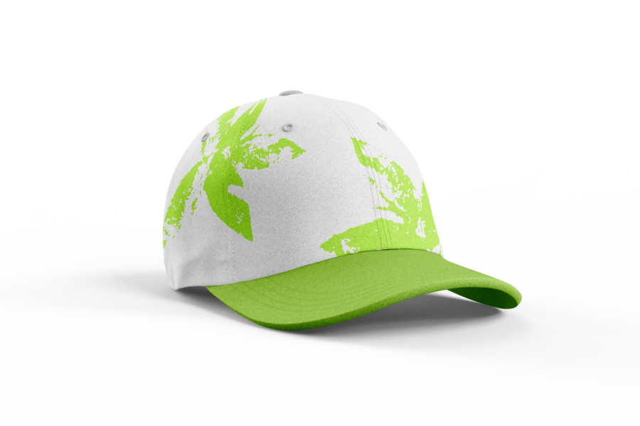 Промпт: generate a white and green caps with nathure print