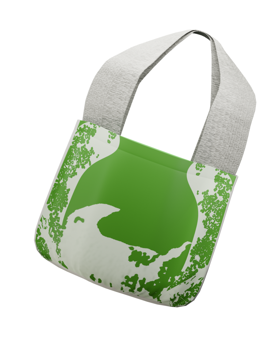 промпт: generate a shopper with a floral ornament. Crocus flowers should be present in the ornament. The shopper itself should be green, and the print on it should be white.