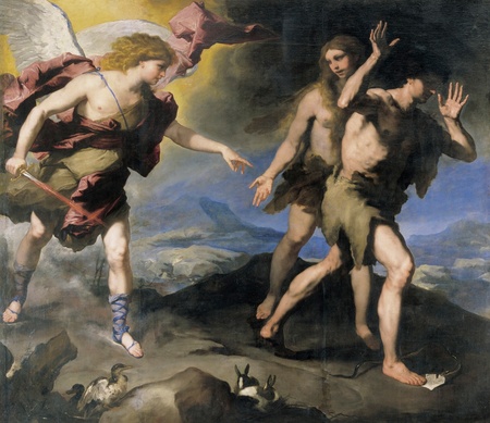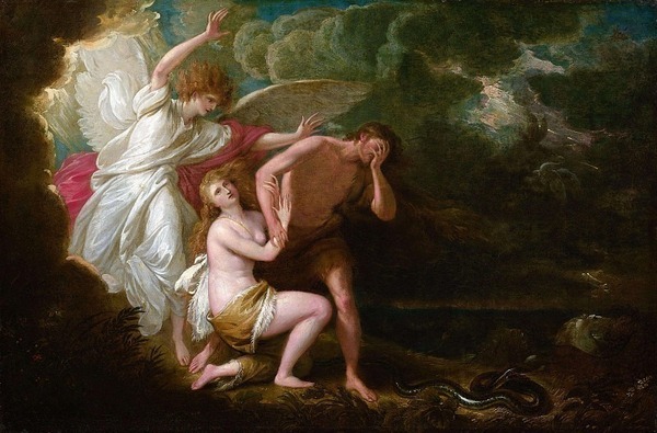 «Изгнание Адама и Евы из Рая» / Бенджамин Уэст / ок. 1791 «Изгнание из Рая» / Лука Джордано / ок. конец 17 века