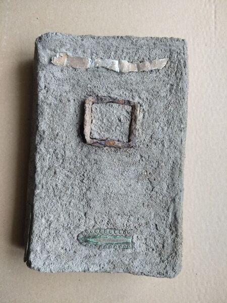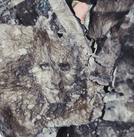 Реконструкция памяти Серия объектов-коллажей 2019 — 2025 Бетон, пепел страниц журналов разных лет Части серии: «Алтай» 2018, «Владикавказ» 2020, «Москва”2025, „Голливуд“ 2025.