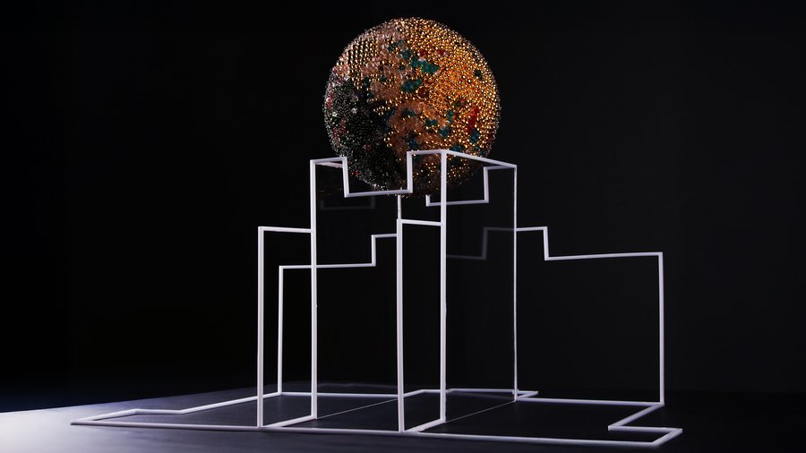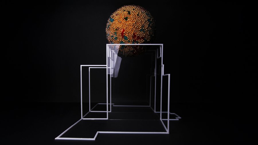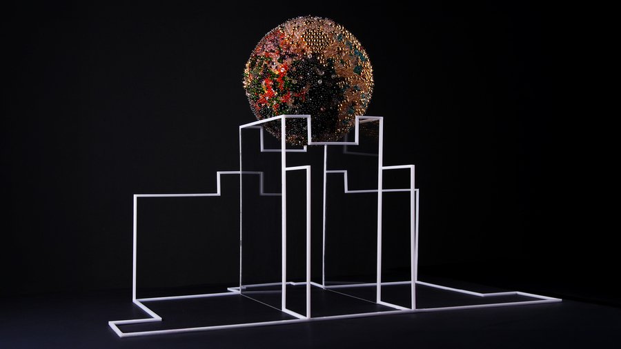 купол арт-объекта напоминает вирус и метафорически отражает влияние работ художника на массовую культуру.