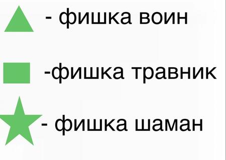 c. Фишки Шаманов — особые юниты игроков, отвечающие за испуг Воинов противника, при использовании карты «Берсерк». В игре предусмотрена 1 фишка каждого цвета.