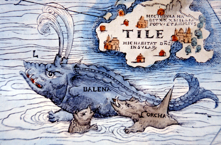 Морская карта/ Carta Marina Олаус Магнус детали, морские монстры 1539 г.