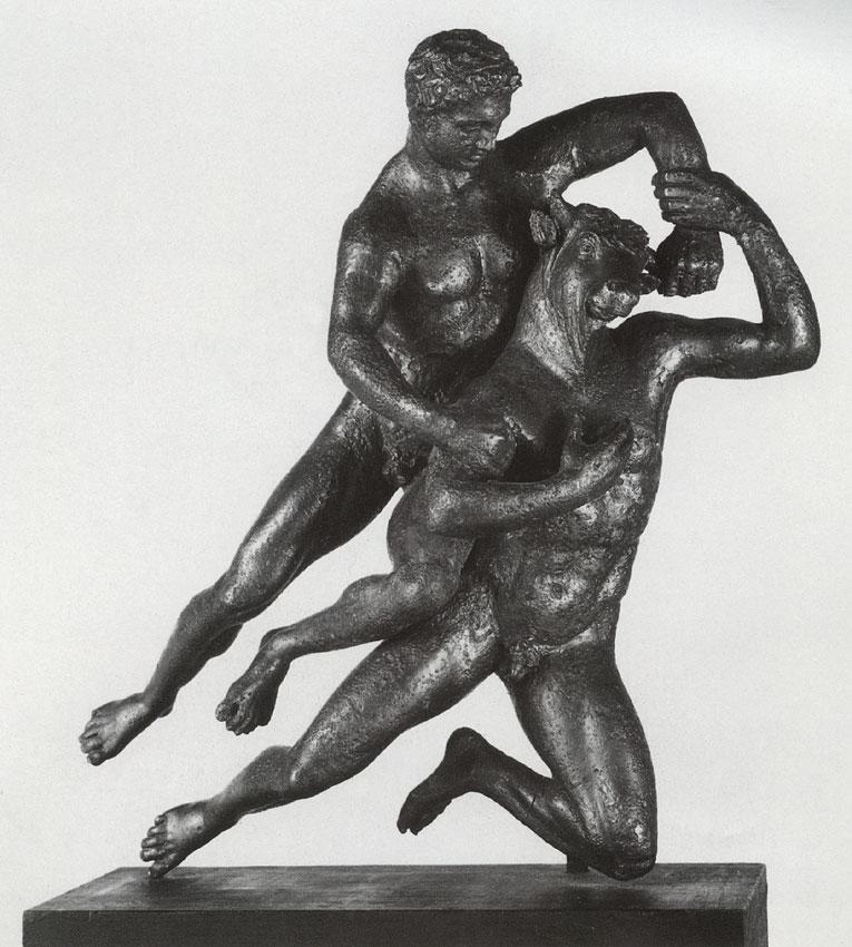(1) Тезей и Минотавр. Бронза. Ок. 30 г. до н. э. Берлин, Государственные музеи. (2) Джанлоренцо Бернини. Голова Медузы в Капитолийских музеях. ок. 1638–1648