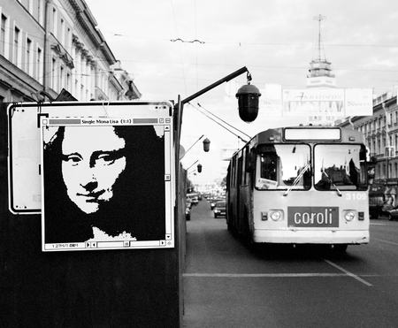 Precisely this, however, permitted the «traveling exhibition» of Pusenkoff’s picture to come about every time without making a great stir and to blend into the easy-going, phlegmatic stream of life: The present-day inhabitants of the former Soviet Union are not so easily astonished and not at all surprised by the intrusion of a new visual image into their living space. The appearance of Mona Lisa within their field of vision is viewed benevolently but philosophically: Everything is transitory.