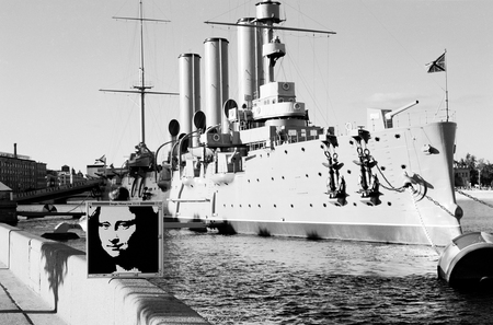 From the series Mona Lisa Goes Russia. Left: Red Square, 1998. L-Print, 40×50 cm. Right: St. Petersburg. Cruiser «Aurora», 2001. L-Print, 120×150 cm