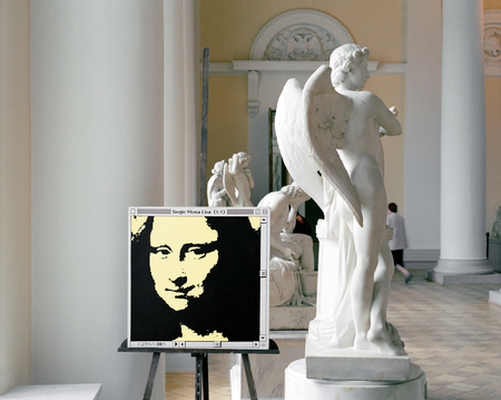 In the course of his journey through Russia, the artist himself has become unavoidably submerged in that life through acquaintances, conversations and unique human contacts with passersby and residents: Authenticity obliges. All of this, however, in order to document this authenticity in photographs which show Mona Lisa’s stay in Moscow, in the environs of Moscow and in St. Petersburg. In the final analysis, these photos are also the goal of the project. And they are also what is exhibited in the realization of the project. Like Pusenkoff’s picture itself, the exhibition project is also characterized by a certain excess of self-sacrifice, by exertions that remain invisible.