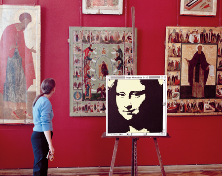 He first compiles quotations from art history on the computer in order to transfer them by hand onto canvas. Correspondingly, the distribution of such an art should also negate reproduction and medial communication and, in a manner just as old-fashioned, be made by hand. Therefore, with his project Mona Lisa Goes Russia, Pusenkoff has dispensed with the services of printing presses or Internet and in his own automobile driven one and the same picture — a paraphrase of Leonardo’s Mona Lisa — over the literally «bad streets» through cities and villages of Russia and installed it at the most various locations whose sole point in common consists in their not being institutionalized exhibition sites — at a bus stop, on the wall of a church, in the gambling casino, at a marketplace or in a museum depot which also serves not the presentation but the «private life» of pictures outside the public sphere.