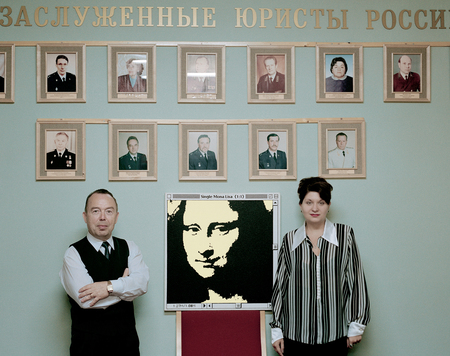 From the series Mona Lisa Goes Russia. Left: Kutusowsky Prospect, 1998.