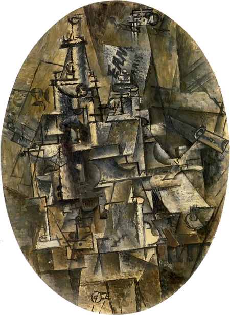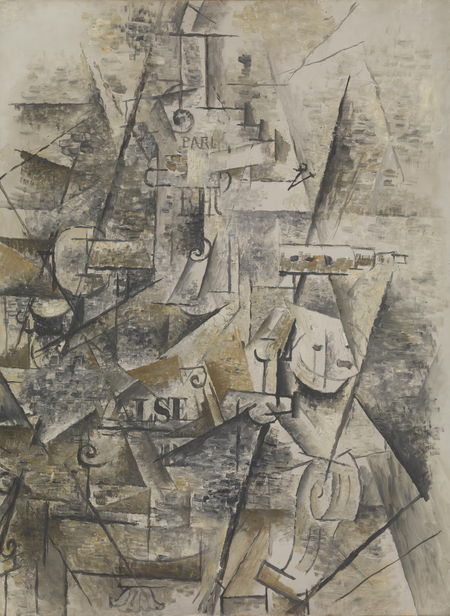 Черты продвинутого этапа аналитического кубизма начинают проявляться в знаменитой паре подвесных работ Жоржа Брака: «Пианино и мандола» и «Скрипка и палитра».