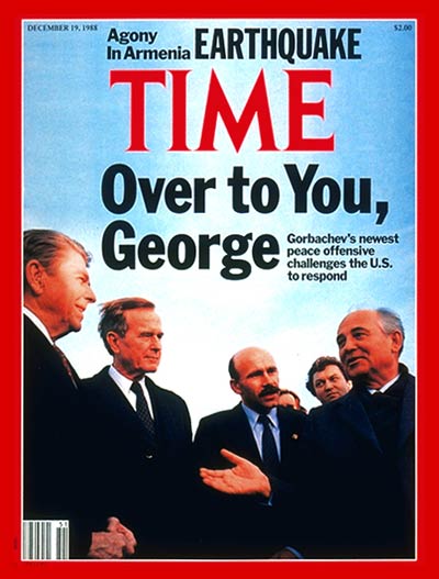 [21] TIME Cover (Dec. 19, 1988): Ronald Reagan, George Bush & Mikhail Gorbachev [22] TIME Cover (Dec. 11, 1989): George Bush & Mikhail Gorbachev